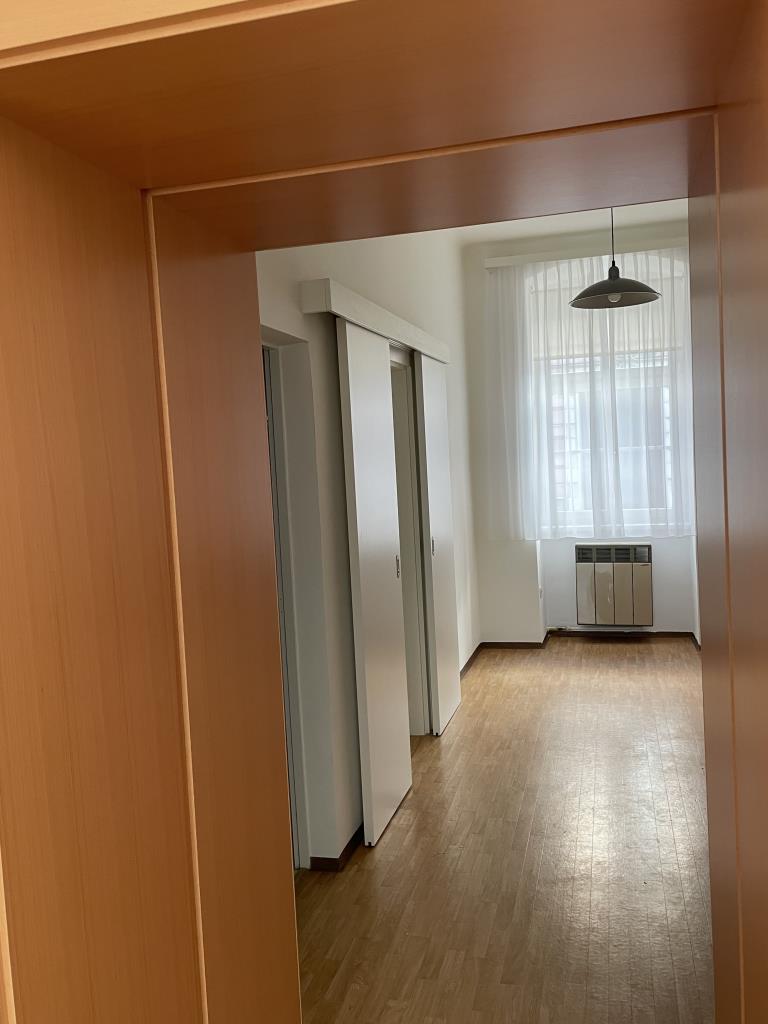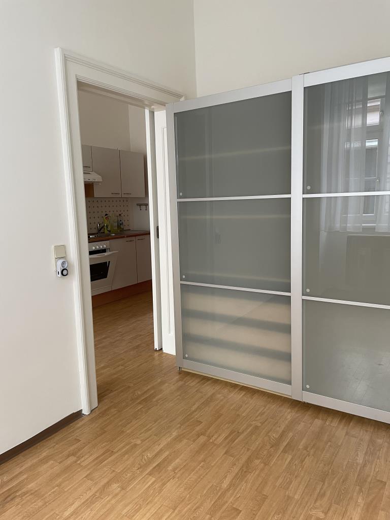 Nette Singlewohnung in absolut verkehrsberuhigter 30 km/h Zone im Hochparterre gelegen, sehr gute Raumaufteilung, bestehend aus Wohnraum, eingerichteter Küche mit Essbereich, Schlafzimmer, Abstellraum, Badezimmer mit Dusche/WC, in gepflegtem ruhigen Stadthaus. Alle Räume mit angenehm hoher Raumhöhe. Teilmöbliert, Sat-TV Anschluss vorhanden.