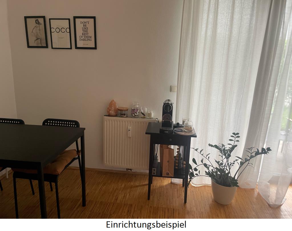 Kleine Zweizimmerwohnung mit westseitiger Terrasse und Garten bestehend aus Vorzimmer, Bad mit Dusche und Waschmaschinenanschluss, WC mit Fenster, Abstellraum, offener Wohnbereich mit Küchenbereich (nicht möbliert), sowie Schlafzimmer.
